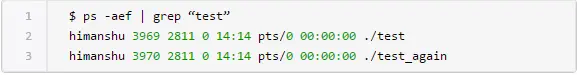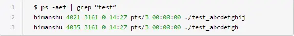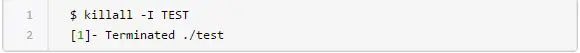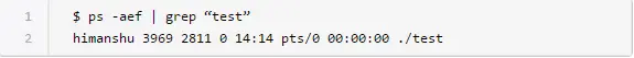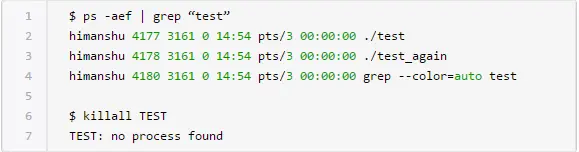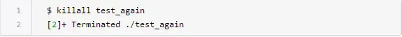 如你所见,killall命令终止了“test_again”进程。你可以通过ps命令来确认这个事实: