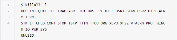 killall支持上面的所有信号。