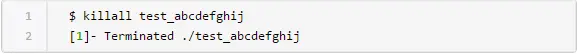 第一个进程的名字有15个字符。现在,让我们试着使用killall杀死这个进程: