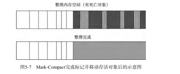 为了解决 Mark-Sweep 的内存碎片问题,Mark-Compact 被提出来。Mark-Compact是标记整理的意思,是在 Mark-Sweep 的基础上演进而来的。它们的差别在于对象在标记为死亡后,在整理过程中,将活着的对象往一端移动,移动完成后,直接清理掉边界外的内存。