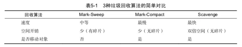 下表为3种主要垃圾回收算法的简单比较