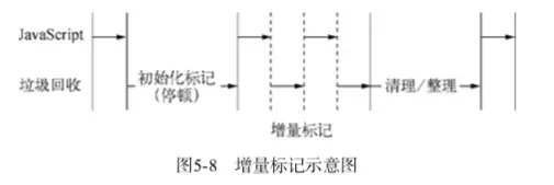 为了降低全堆垃圾回收带来的停顿时间,V8 先从标记阶段入手,将原本要一口气停顿完成的动作改成增量标记(Incremental Marking),也就是拆分为许多小“步进”,每做完一“步进”就让JavaScript应用逻辑执行一小会儿,垃圾回收和应用逻辑交替执行直到标记阶段完成。