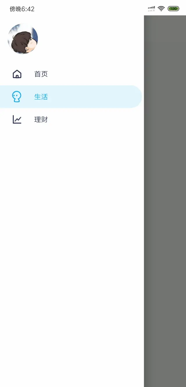 就是在Scaffold这个脚手架Widget增加一个drawer属性即可,具体我也不细讲,感兴趣可以看完整代码。