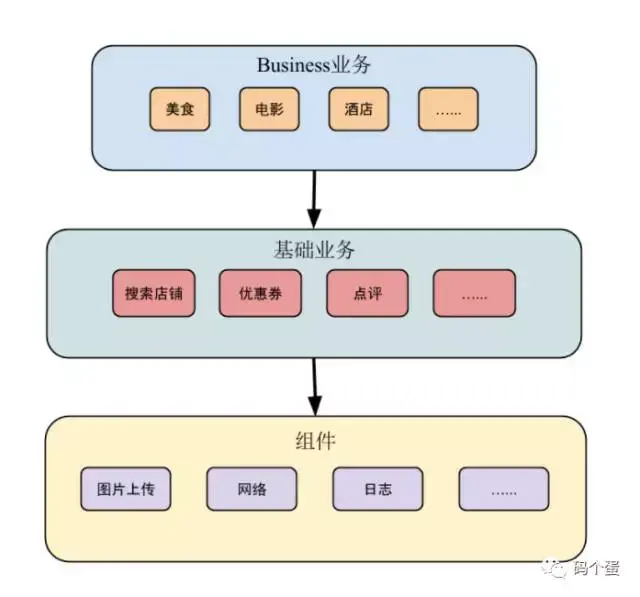 图中Business业务公用基础业务,而基础业务的实现可能依赖于某组件。