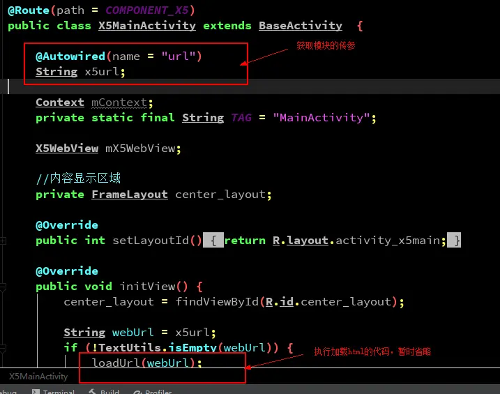 比如我们要从首页模块调用x5组件,那么请看相关代码: