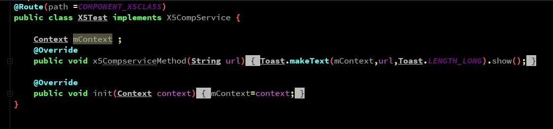 应用场景是我们zhongmodule_zixun模块中的Fragment要调用X5组件中的X5Test类中需要用到的方法: