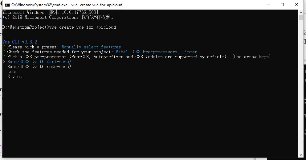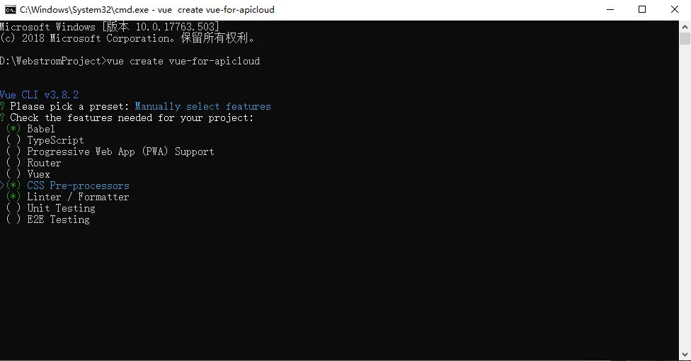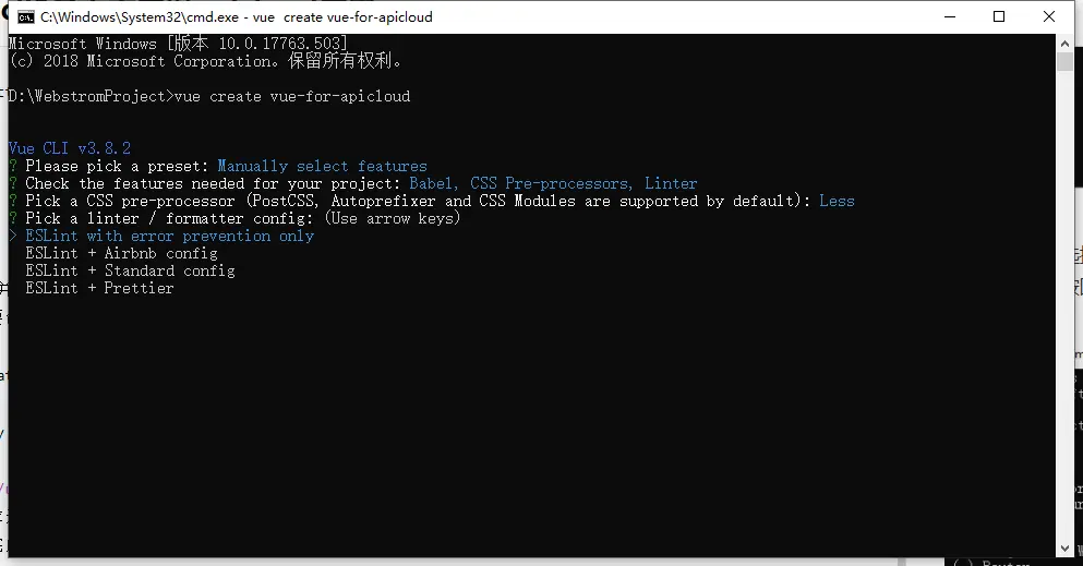 vue create vue-for-apicloud