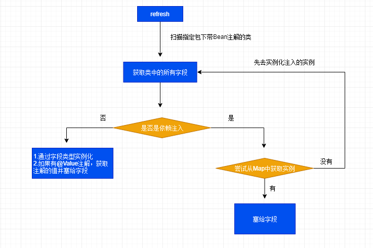 beanByClassMap中获取对应的实例,如果没有,就先要去实例化该字段对应的类型。