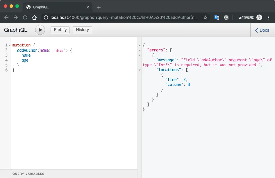age: { type: new GraphQLNonNull(GraphQLInt) } // 判断非空