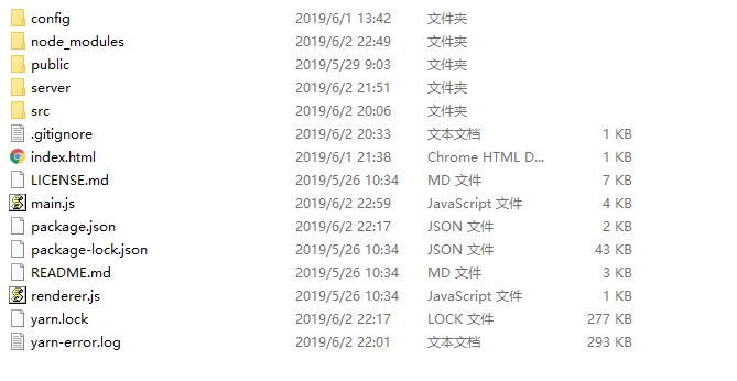 config文件放置webpack配置文件server文件夹放置Node.js的后端服务器代码src下放置源码main.js是Electron的入口文件json文件是脚本入口文件,也是包管理的文件~