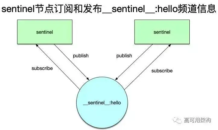 每隔2秒,每个哨兵节点将会向Redis数据节点的__sentinel__:hello频道同步自身得到的主节点信息以及当前哨兵节点的信息,由于其他哨兵节点也订阅了这个频道,因此实际上这个操作可以交换哨兵节点之间关于主节点以及哨兵节点的信息。