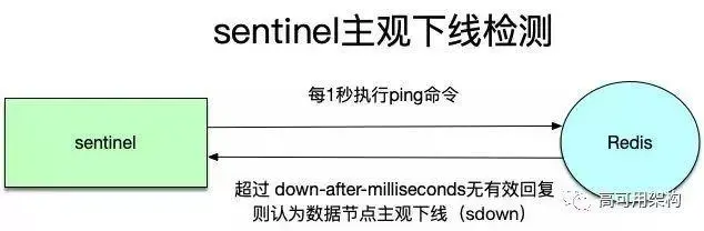 上面三个监控任务中的第三个探测心跳任务,如果在配置的down-after-milliseconds之后没有收到有效回复,那么就认为该数据节点“主观下线(sdown)”。