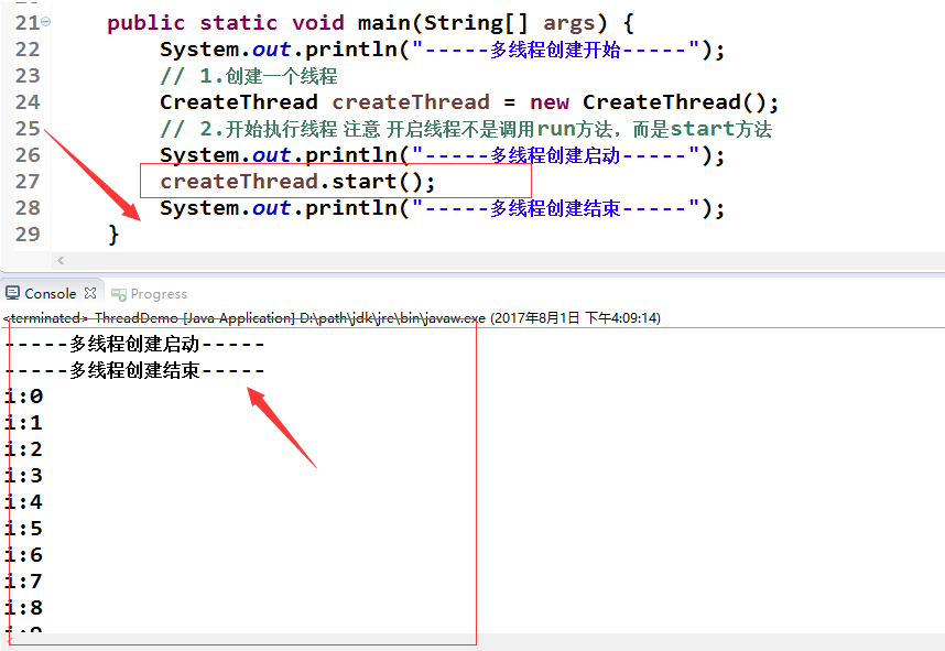 System.out.println("-----多线程创建启动-----");