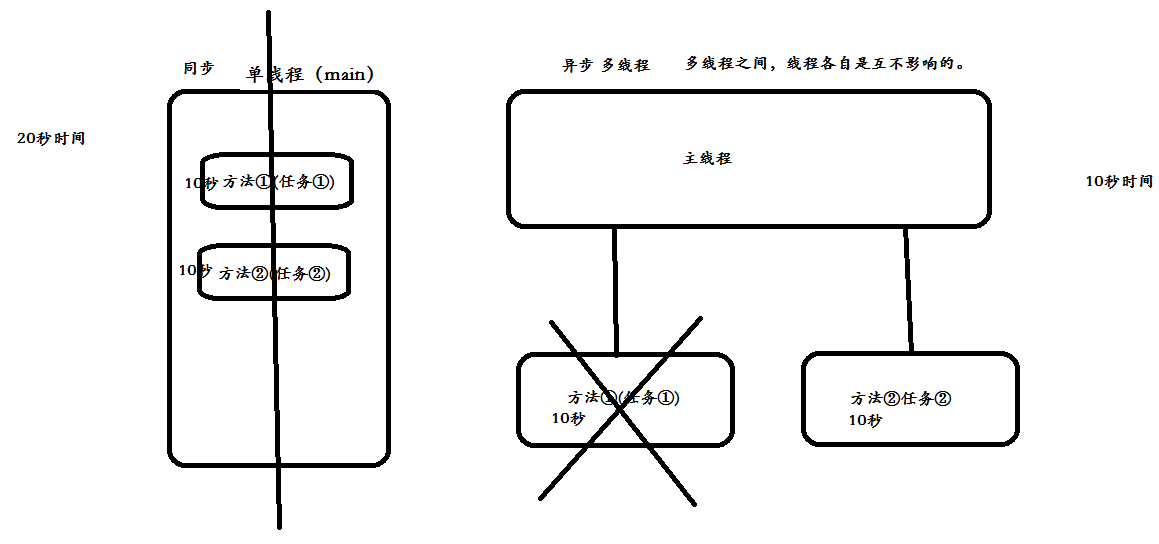 注意:画图演示多线程不同执行路径。