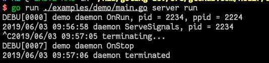 logrus.Debugf("demo daemon OnRun, pid = %v, ppid = %v", os.Getpid(), os.Getppid())