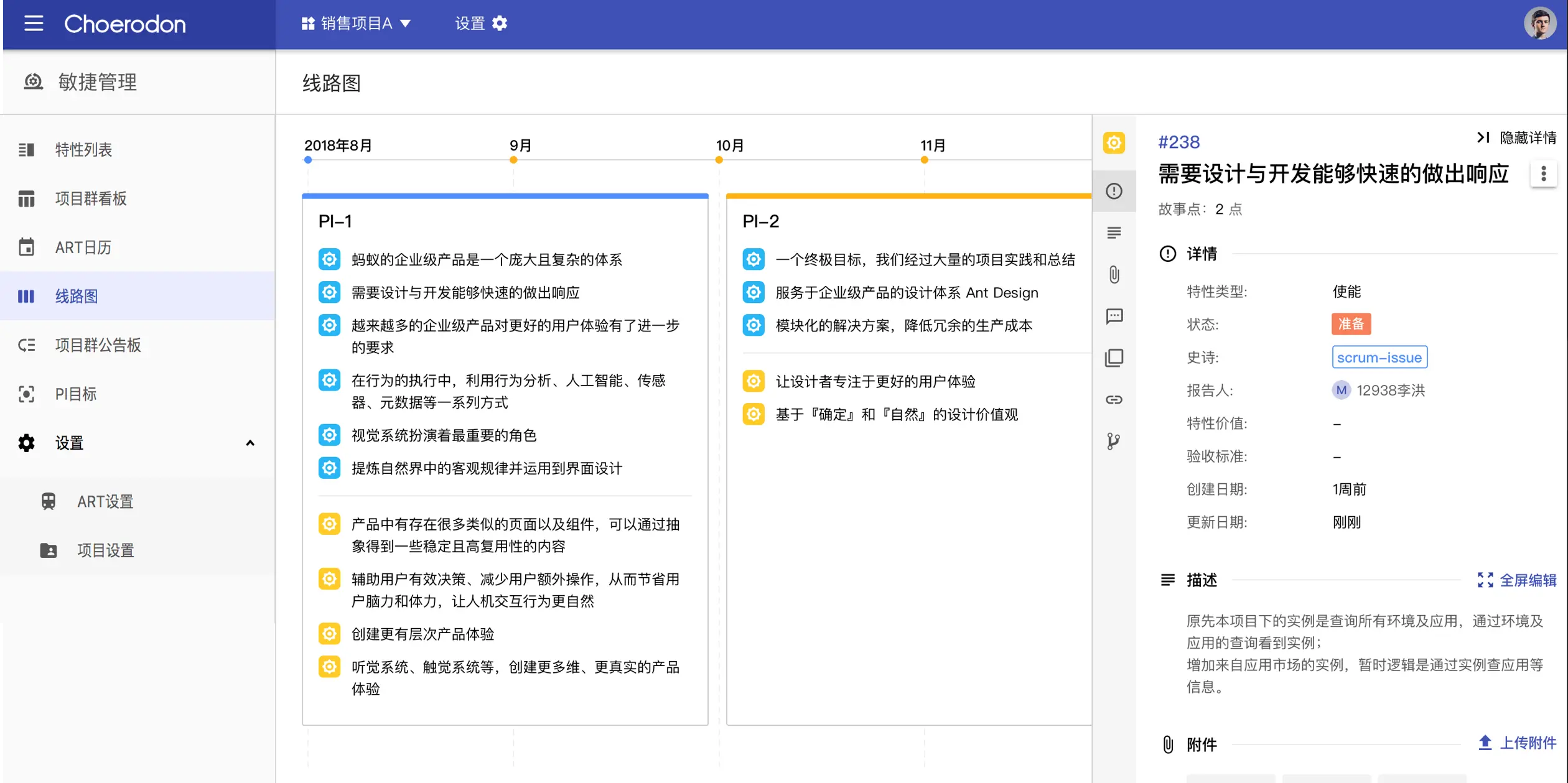 - PM可以在项目群路线图查看3个PI的feature待办事项。