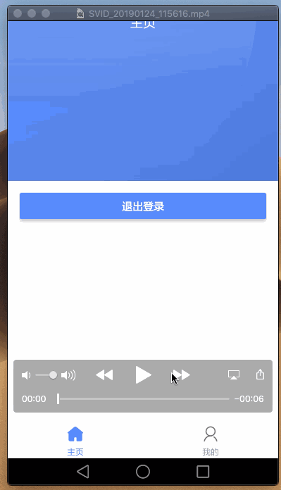 在这个案例中,有三个页面:主页,我的,登录。其中“主页”和“我的”是两个标签页,“主页”头部有背景图片,“我的”页面顶部是蓝色,“登录”页面顶部为白色。页面效果如下图。