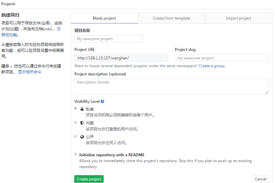 - c.可见性(库类别) 根据实际情况填写完各项之后,点击创建项目,项目创建成功