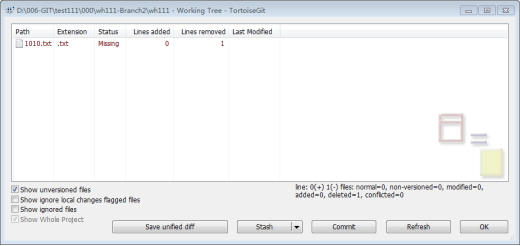 ⑤ Diff 本地仓库未做更改及新增,仅删除部分文件时,可用Diff---Commit---Push.