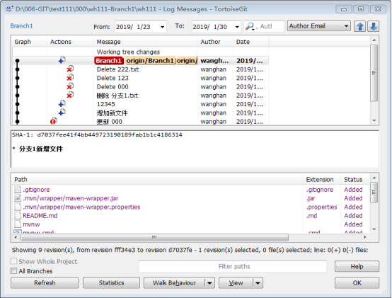 ⑥ Show log 可查看提交历史