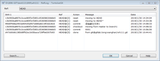 - 要重返未来,用git reflog查看命令历史,以便确定要回到未来的哪个版本。