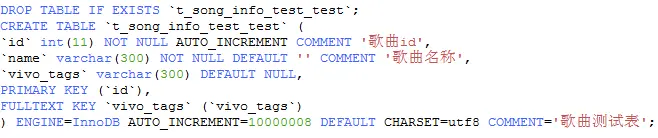 首先 来创建一张带有FULLTEXT索引测试表 建表语句: