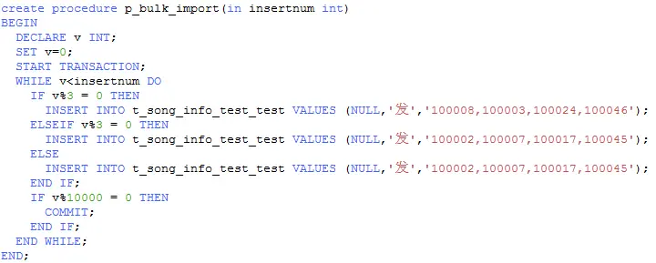 写一个批量插入的存储过程: