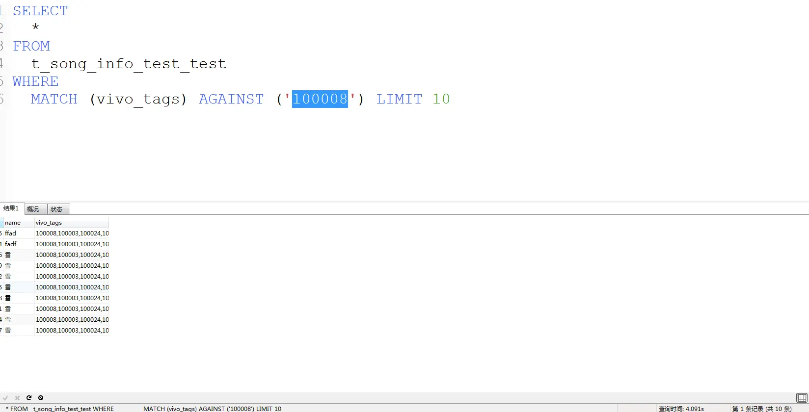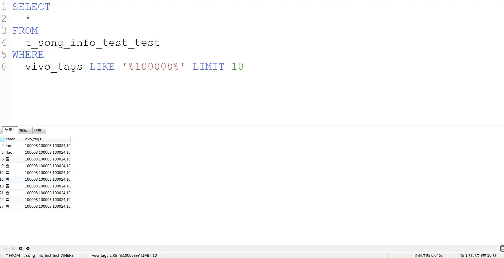 为了验证这个观点,我往t_song_info_test_test表中插入两条数据