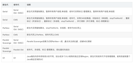 GC算法和GC收集器也是两个维度的概念。 GC算法包括清除算法(也叫标记清除算法),复制算法,标记-整理算法。 不同垃圾收集器针对不同的内存区域,采用不同的GC算法。 具体介绍,网上相关资料很多,可以参考这篇文章:blog.csdn.net/xiaoping091…
