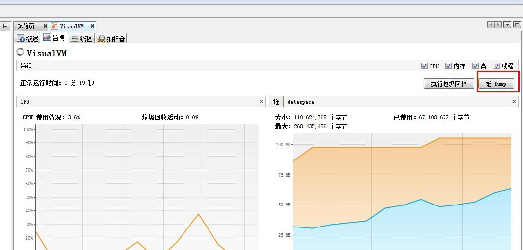 如果是使用jvisualvm就更方便了,直接点击如图所示的按钮即可: