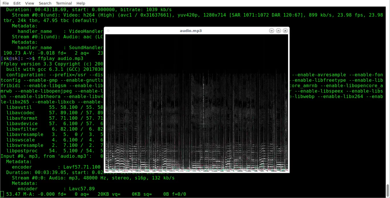 如果你不想看 FFmpeg 标语和其它细节,而仅仅想看媒体文件信息,使用 -hide_banner 标志,像下面。