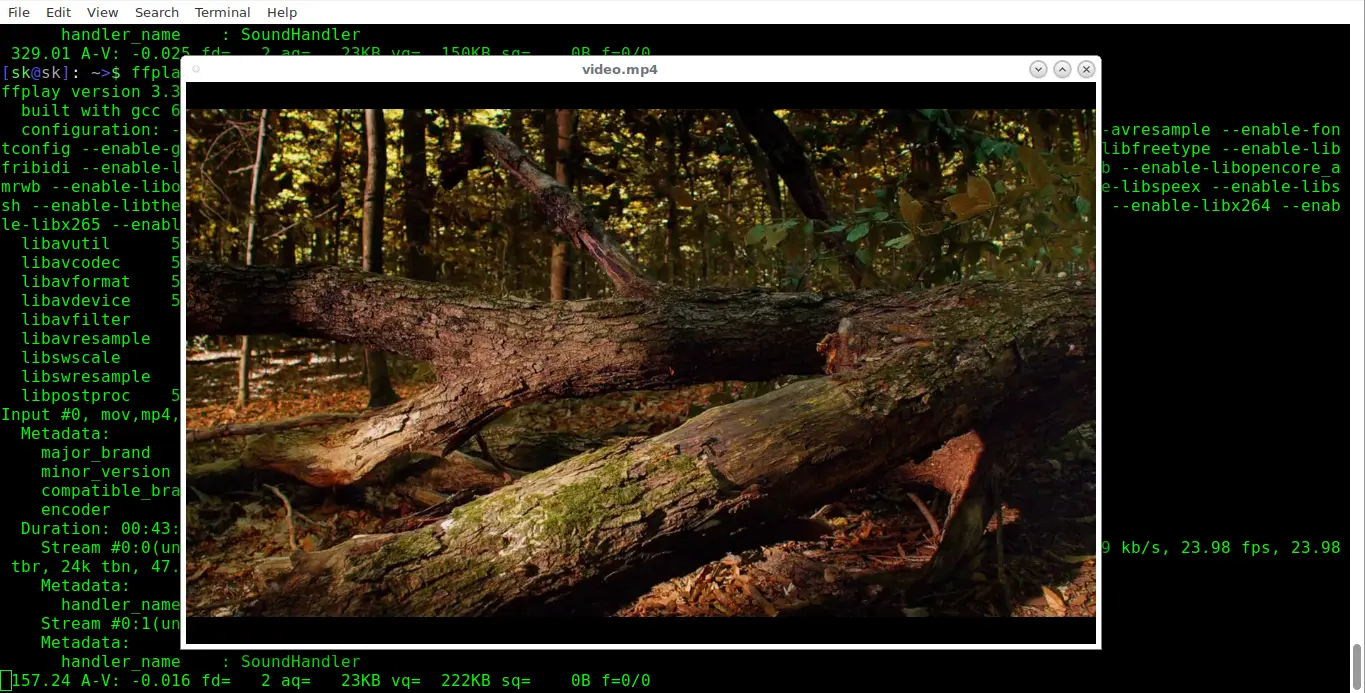如你在上面的输出中看到的,FFmpeg 显示该媒体文件信息,以及 FFmpeg 细节,例如版本、配置细节、版权标记、构建参数和库选项等等。