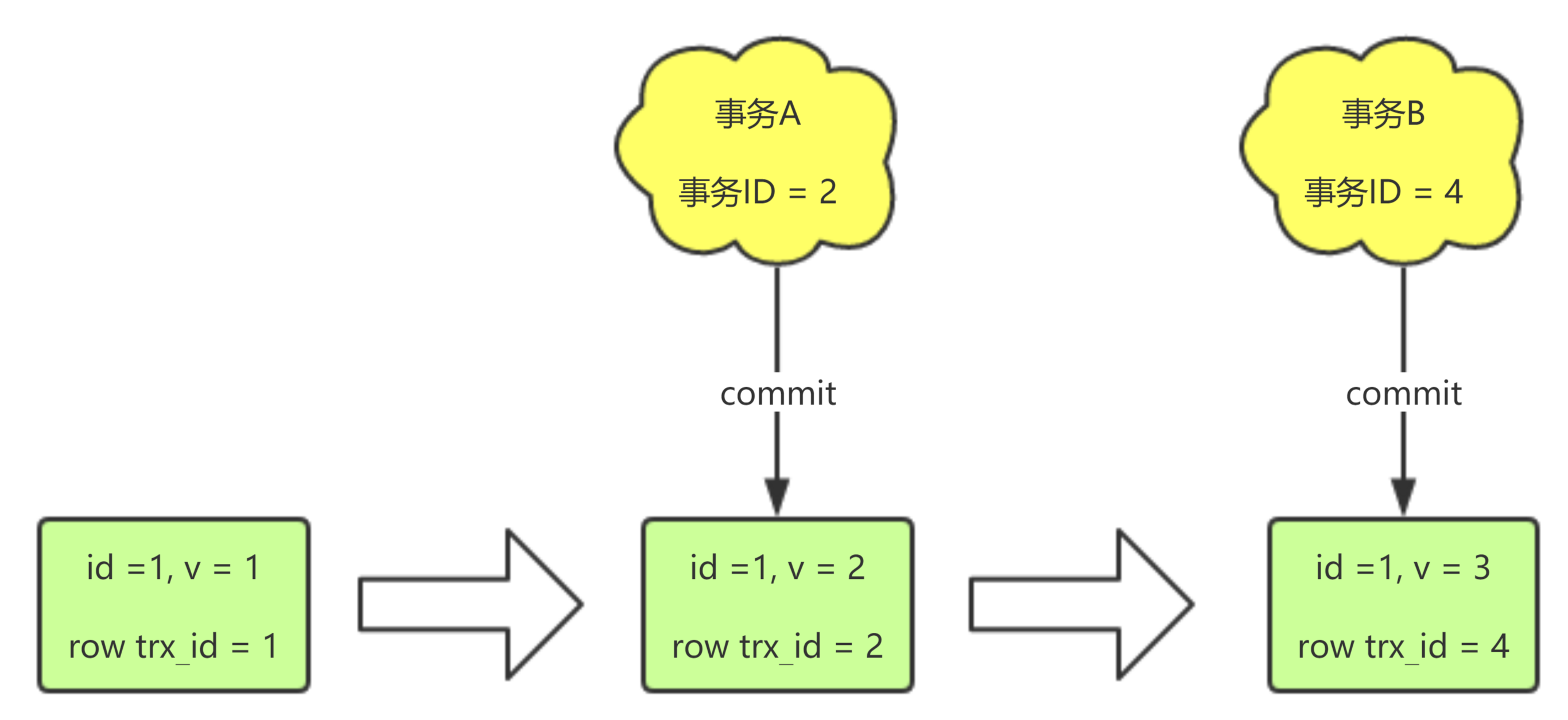 row trx_id代表的实际上是数据的版本,在提交事务的时候,row trx_id列会被赋值为提交的事务的事务ID -