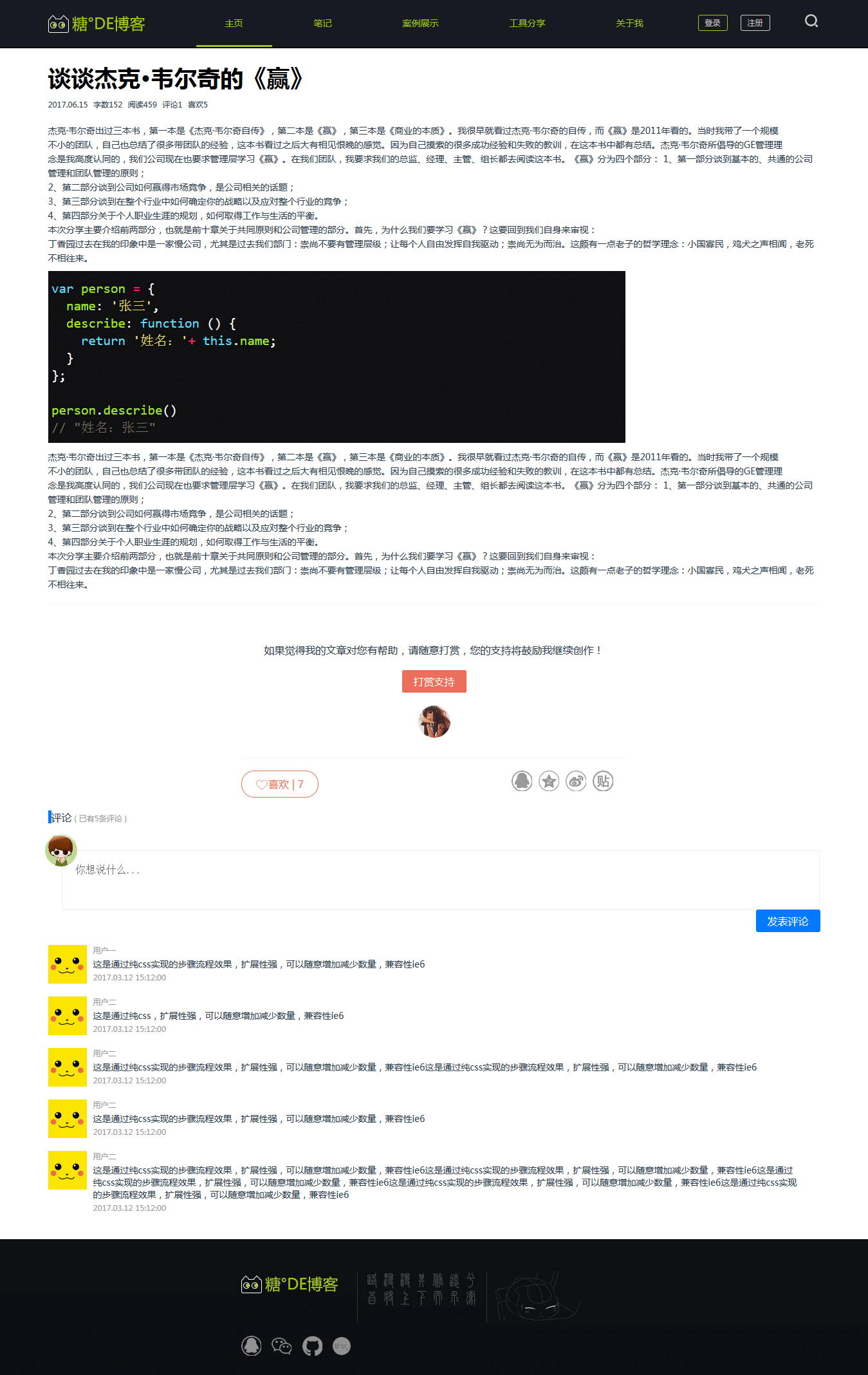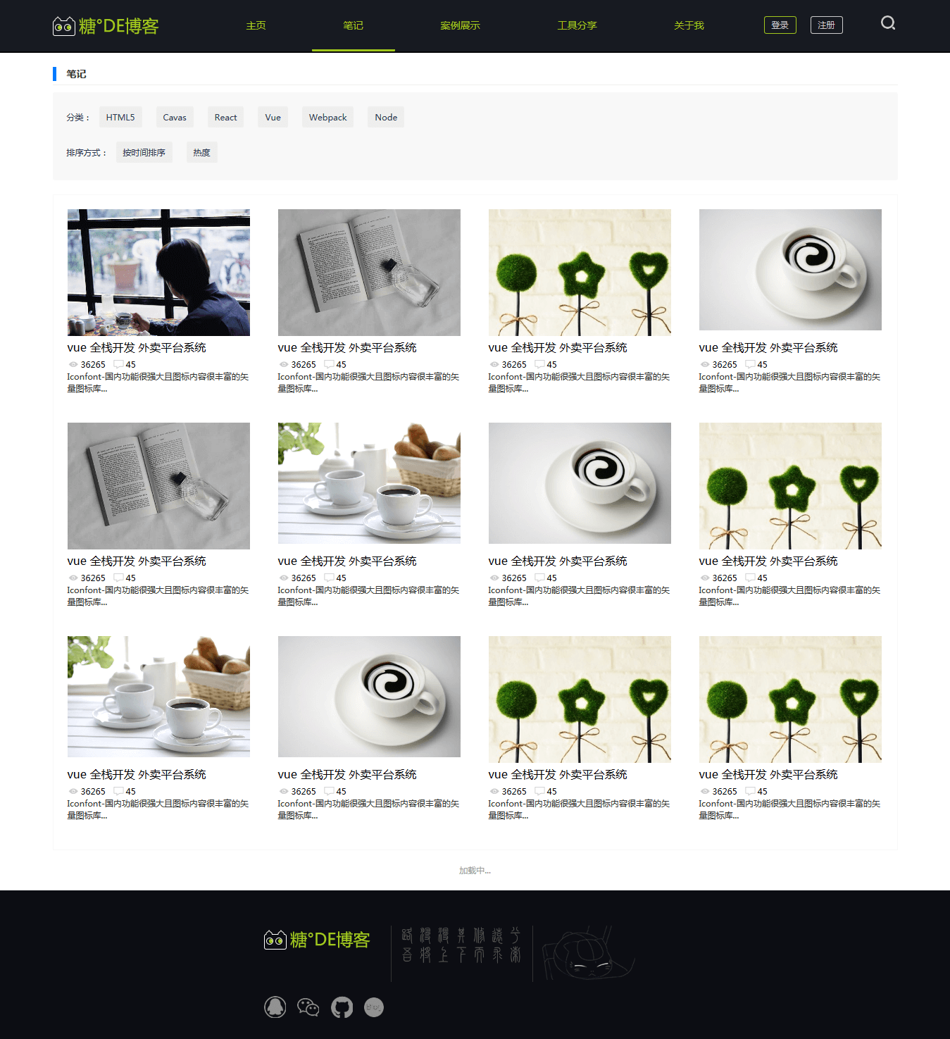 总述: 模块:笔记(文章)、案例、工具分享。 功能:笔记阅读、评论、分享、搜索、案例展示、工具分享。