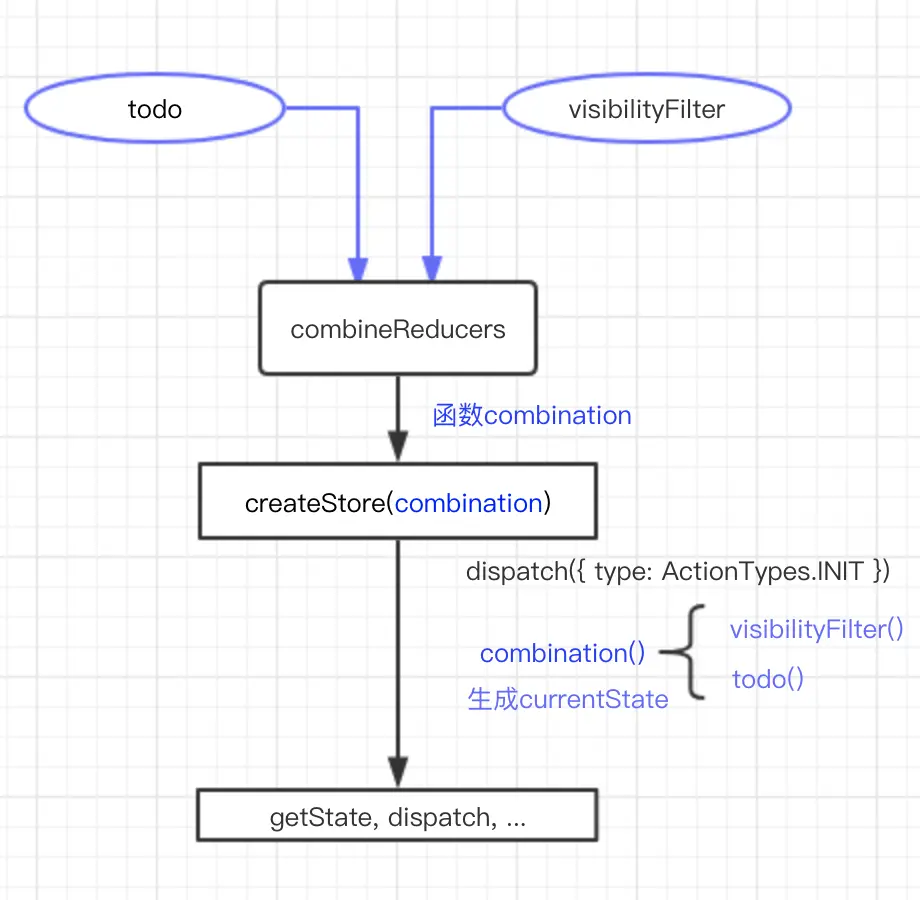 - 在每个reducer函数中,action为{ type: ActionTypes.INIT }, state为undefined