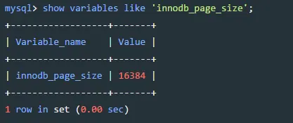 在 MySQL 中我们的 InnoDB 页的大小默认是 16k,当然也可以通过参数设置: