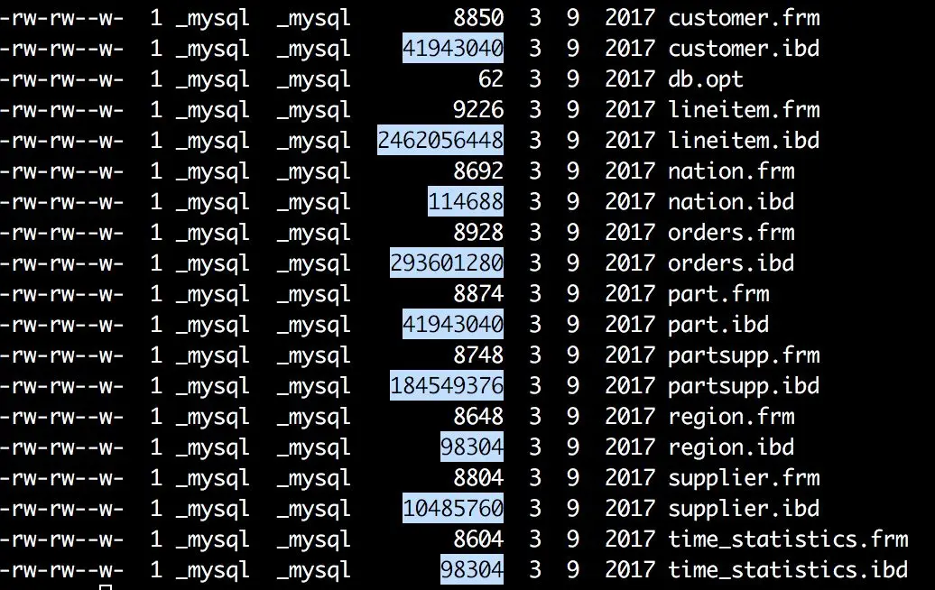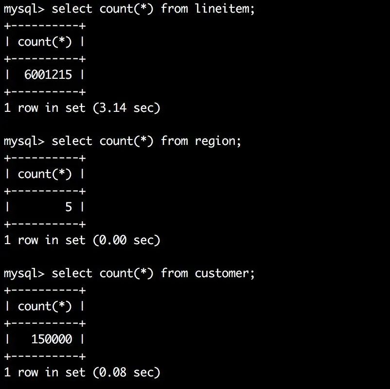 lineitem 表的数据行数为 600 多万,B+ 树高度为 3,customer 表数据行数只有 15 万,B+ 树高度也为 3。
