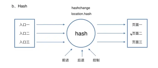 当我们改变一个地址的时候,去修改hash,然后监听hashchange事件,你就知道页面的地址发生的变化,然后在这个事件里面去做相应的动作,就能完成刚才所说的这种页面的切换。