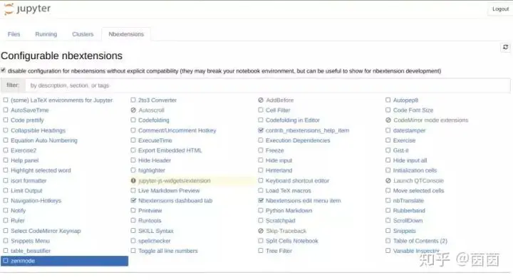 完成此操作后,你会在 Jupyter Notebook 主页顶部看到一个 Nbextensions 选项卡。这里面有很多非常棒的扩展供你使用。