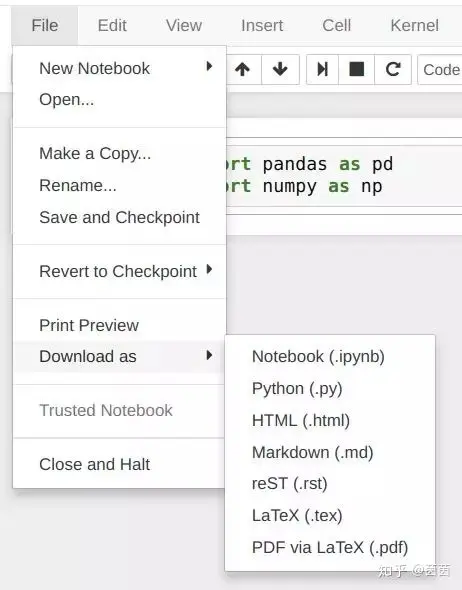 这是 Jupyter Notebook 中最重要和最棒的功能之一。当我需要写博客文章,但我的代码和注释都保存在 Jupyter 文件中时,我需要先将它们转换为另一种格式。请记住,这些 Notebooks 采用 json 格式,在共享它时这并不是很有帮助。我无法在电子邮件或博客上发布不同的单元格或代码块,对吧?