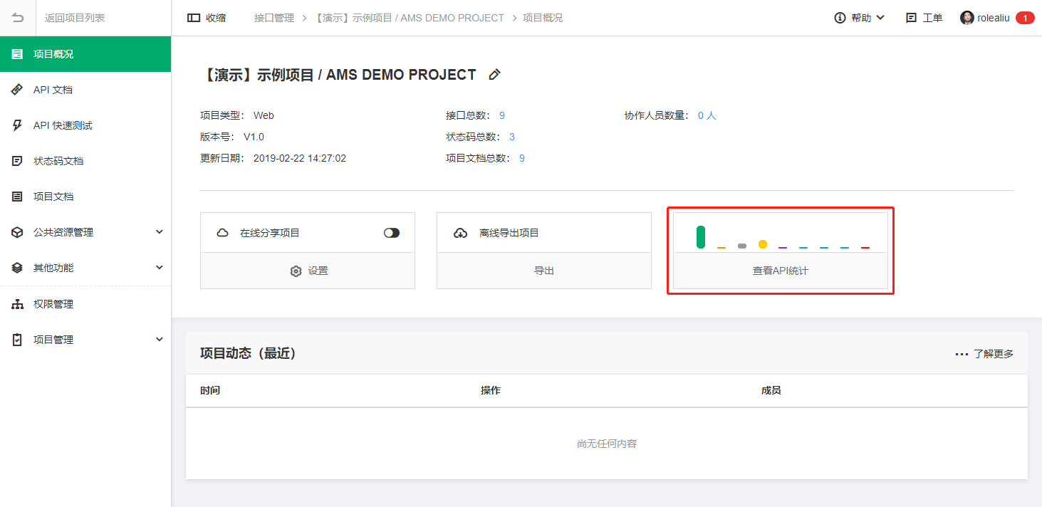 1. 项目概况页加入API统计信息,方便了解项目内的API状态及其数量分布