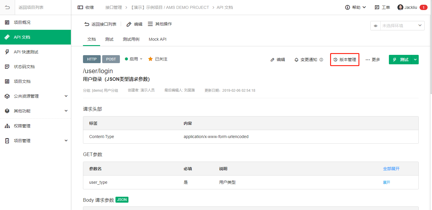3. API版本管理按钮移动到API文档详情页面