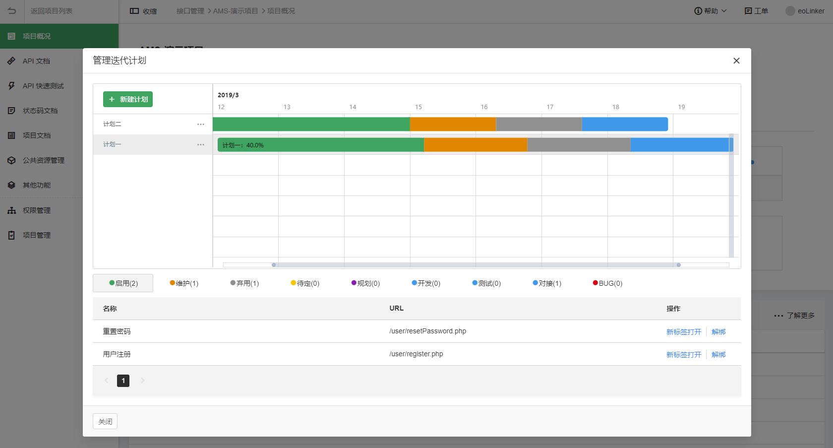 8.项目概况页加入迭代计划管理,用于管理多个 API 的开发任务