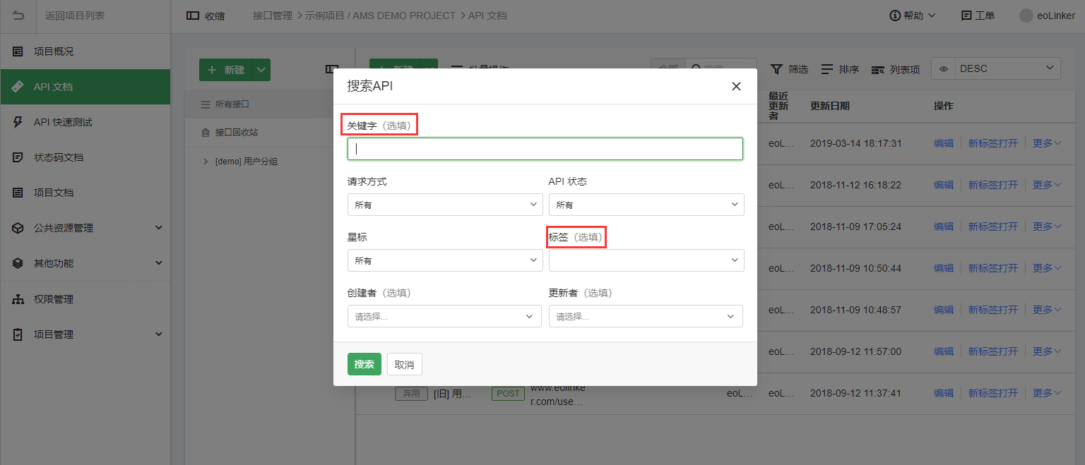 10.高级搜索API中,新增标签搜索