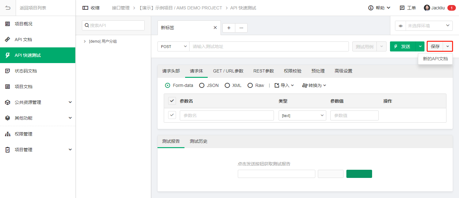 14. API快速测试支持将测试结果保存为API文档