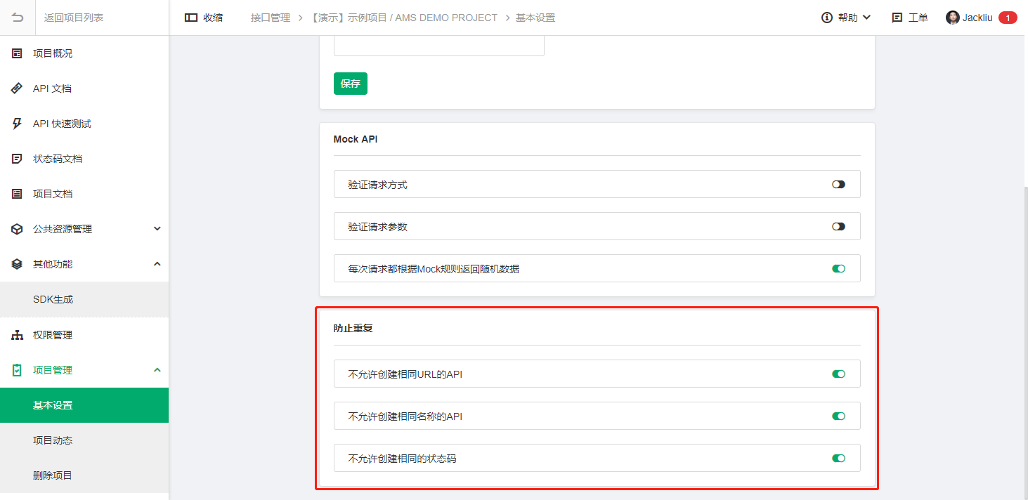 16. API项目设置加入API文档查重的设置选项