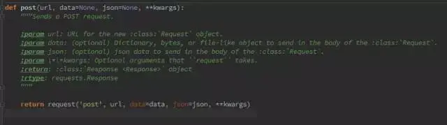 在GET请求中,我们把params的参数成为URL参数,也就是在URL中传递参数,事实上,在每一个GET的请求过程中,得看具体的请求过程。接下来我们来看POST请求的参数,见该部分的源码截图: