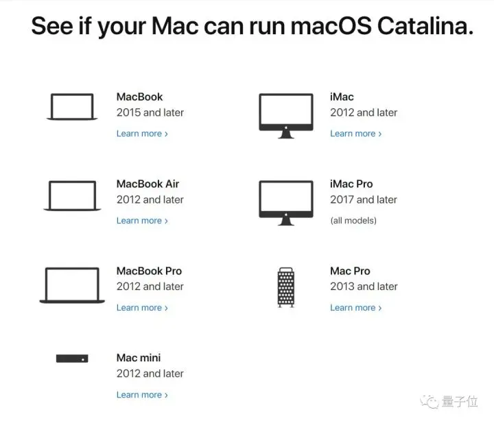 macOS Catalina兼容设备如下: