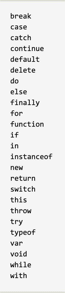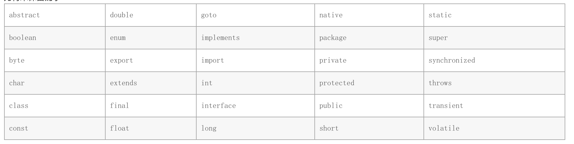 除了关键字ECMA-262还描述了一组不能用作标识符的保留字(就是一种在现在的版本还没有特定的用途但是将来很有可能作为关键字出现的“可能关键字”)。