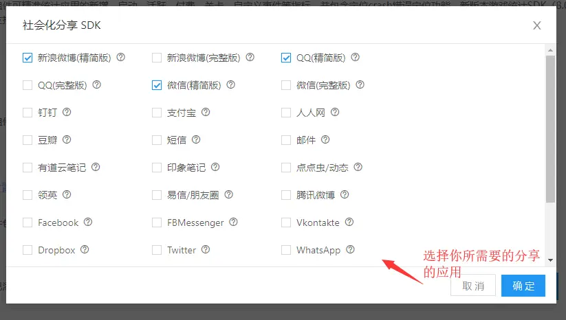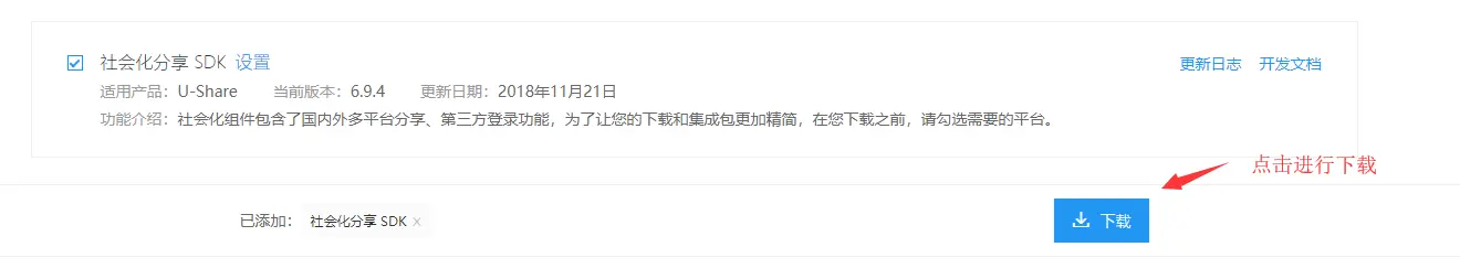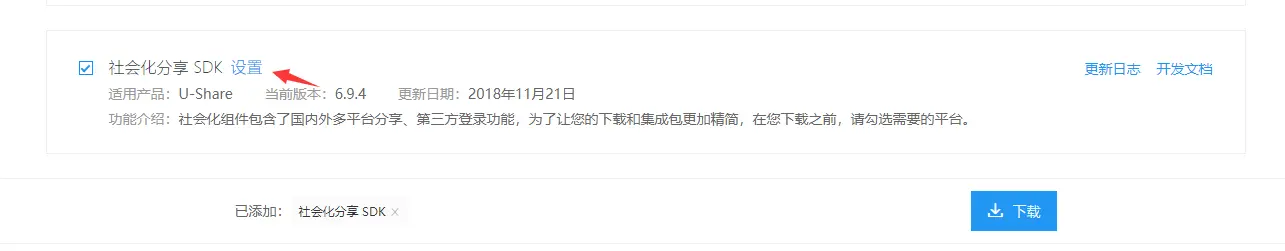 2. 下载所需分享的第三方社会化分享SDK(developer.umeng.com/sdk?spm=a21…)